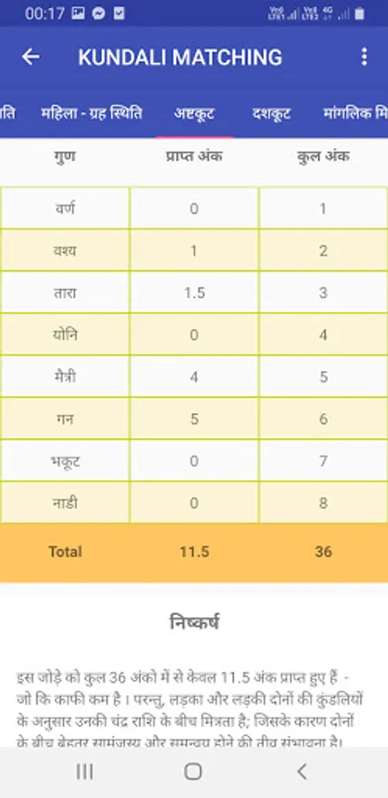 • Ashtakoota Report based on 36 points match.