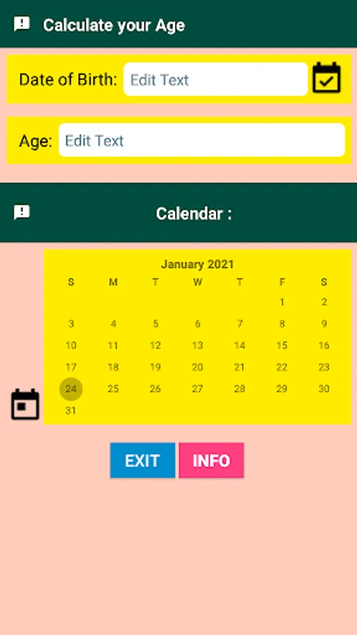 • This application calculates the Age of any person with the help of BIRTH DATE.