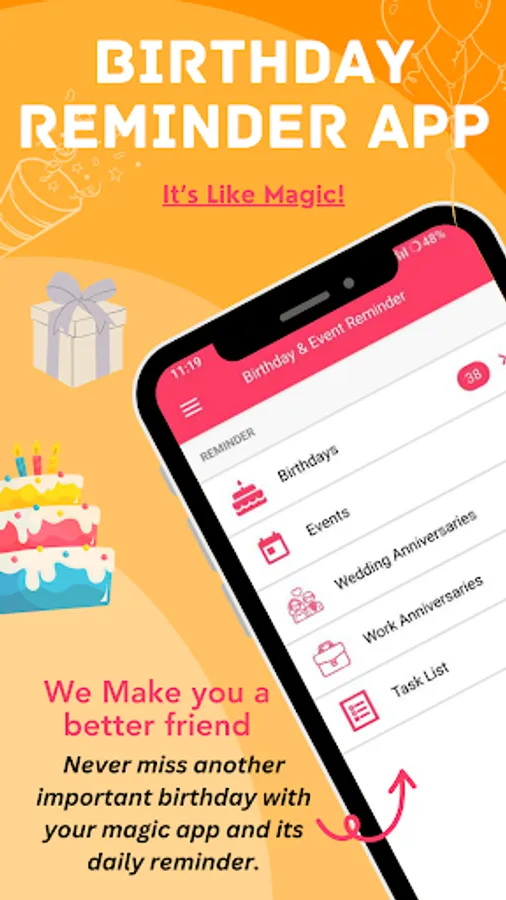 π Get timely notifications for upcoming birthdays and events, so you never miss out.