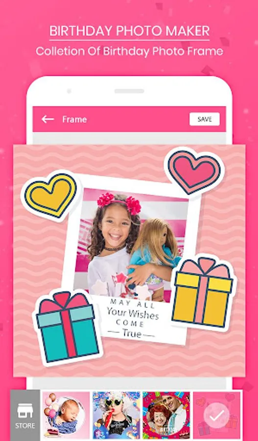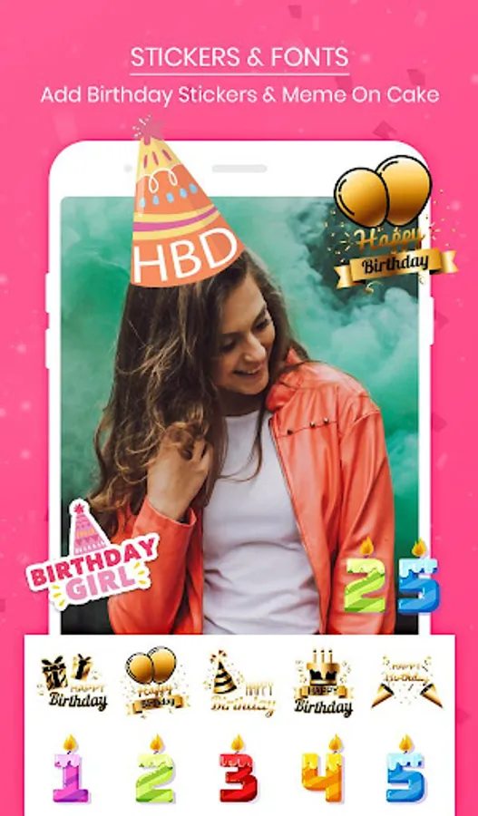 Create birthday photo and wish your loved one with using specially crafted greetings card. Lot's of birthday cakes and stickers available to creating customized birthday photo frame. You can select your favorite cake, write the specific name on birthday cake, decorate the card by adding some beautiful stickers and meme. Wish specially to your friends and family members by sending special birthday card and celebrate the birthday.