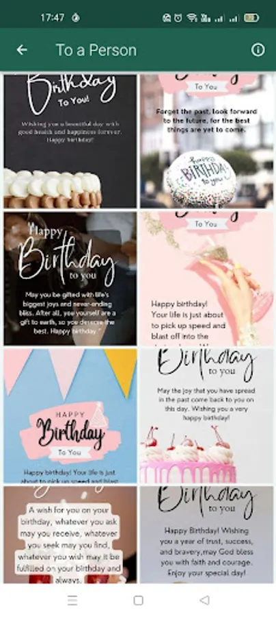 The app contains several categories of birthday wishes tailored to fit your special need.