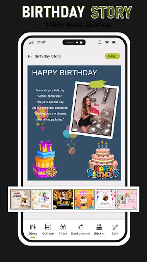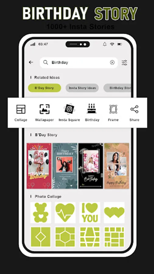 ➺ Create birthday photo status & share on story.