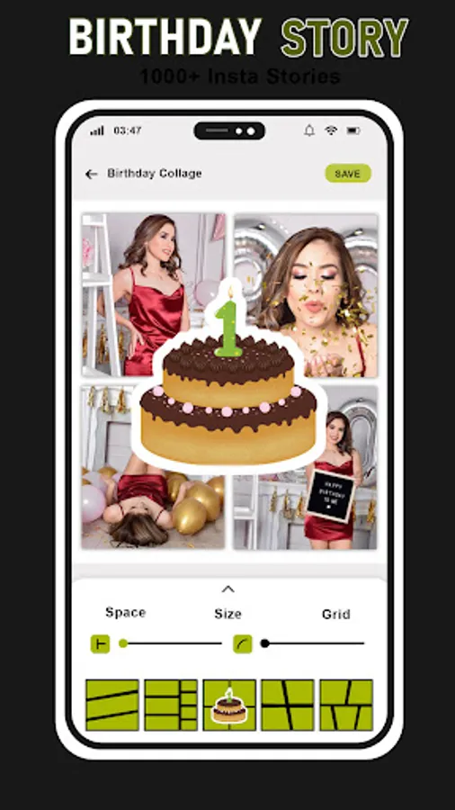 - Birthday collage give you lots of cake collage layout. You can select photo from your gallery album.