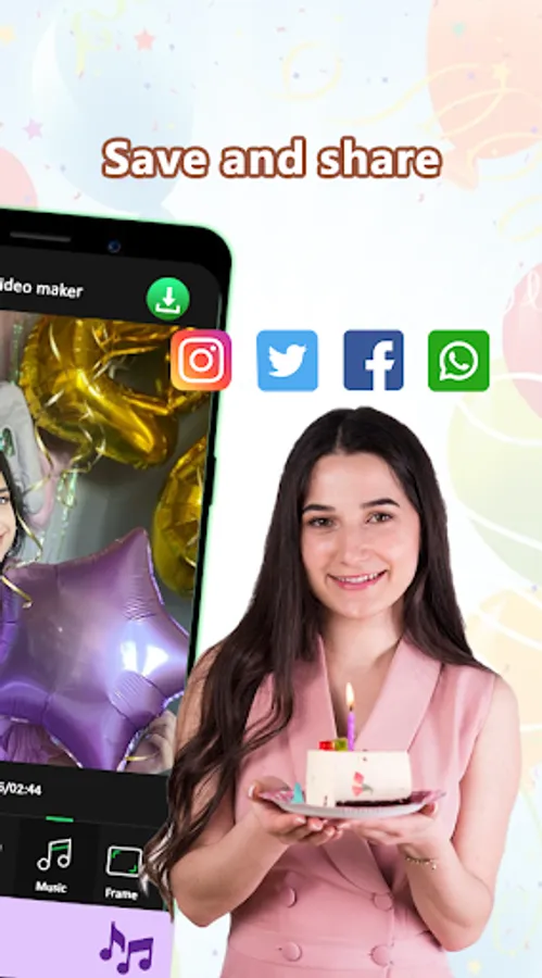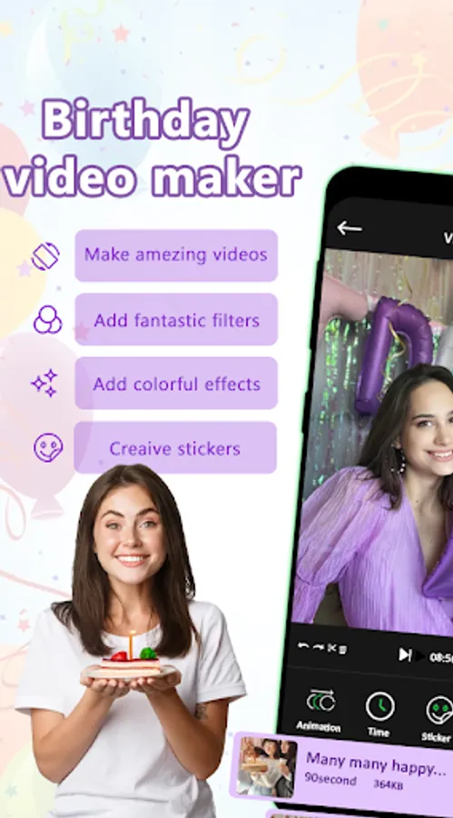 Birthday Video Maker with this app users can easily create birthday video with music, frames, effects and transition.