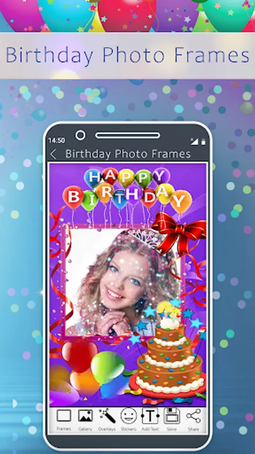 Make the best personalized birthday cards with Birthday Photo Frames πππ app. This free photo frames app offers a great and unique collection of photo frames and photo effects that will beautify your photo. Use this picture effect app features to adorn your photos and share the photo on social media with your friends or download the image to your phoneβs gallery.