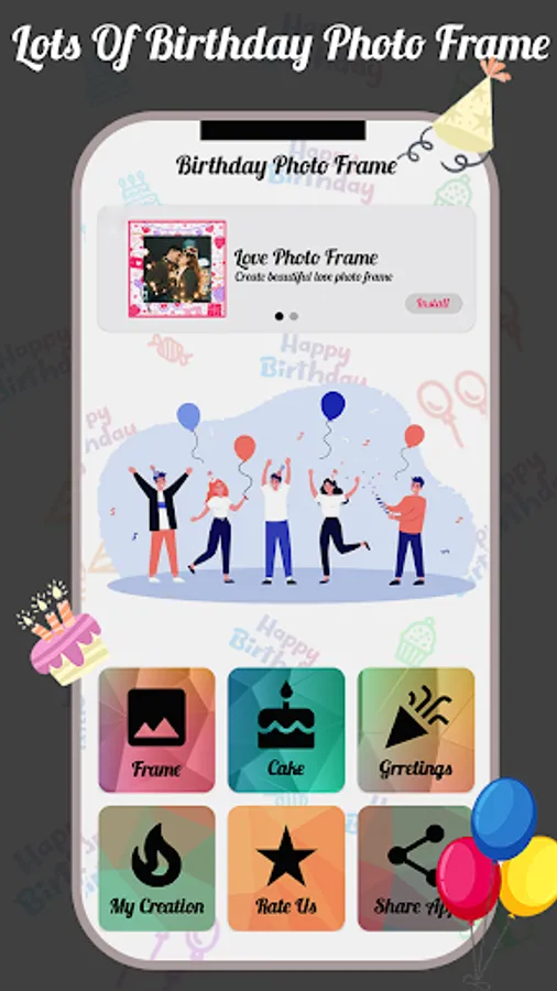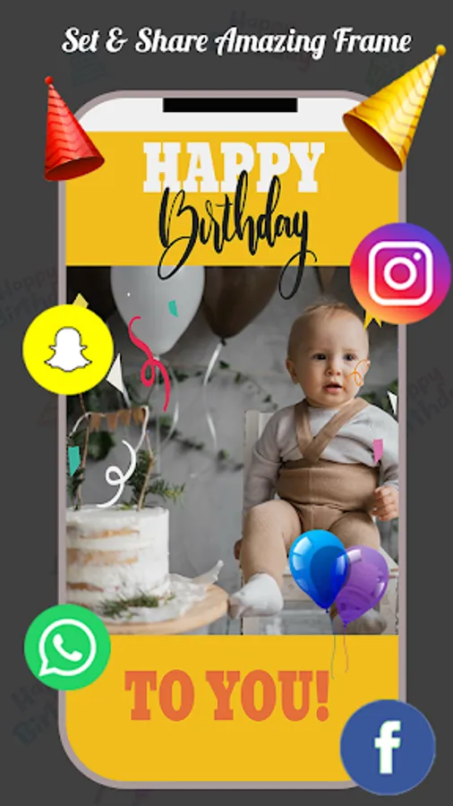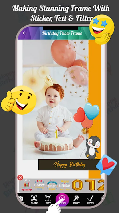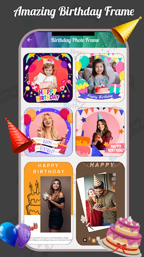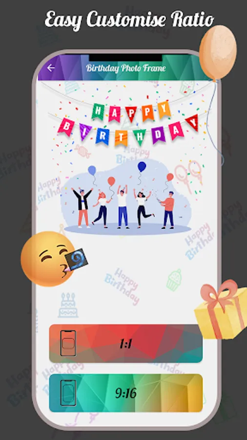 - Birthday photo frame editor with 1:1 and 9:16 frames