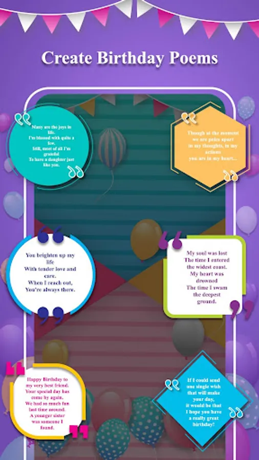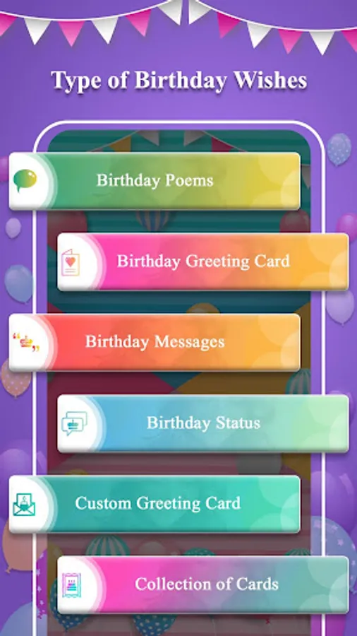 This Application Contains Birthday Wishes, Birthday Poems, Birthday SMS, Birthday Messages, Birthday Status.
