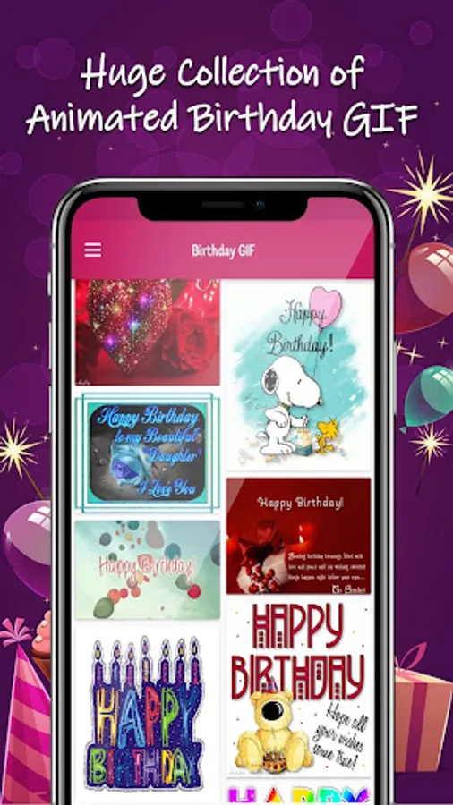 We have large collection of Happy Birthday Wishes to help you with filling in your birthday card. We have collection of birthday cards, birthday message and animated birthday GIF, Cake GIF for every category. These birthday image & quotes would surely brighten the smile on the face of your near and dear ones. You can download and share birthday cards, gif animated images and birthday messages without any limits by using this app. This app provides very funny and unique images of birthday wishes cards for women, men, boys and girls, birthday cake wishes, birthday cake gif.