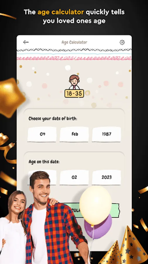 The app features an age calculator that helps you keep track of your friends' and family members' ages with ease. Simply enter their birthdate, and the app will instantly display their age in years, months, and days.