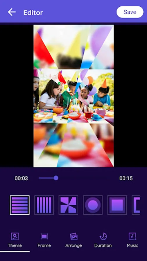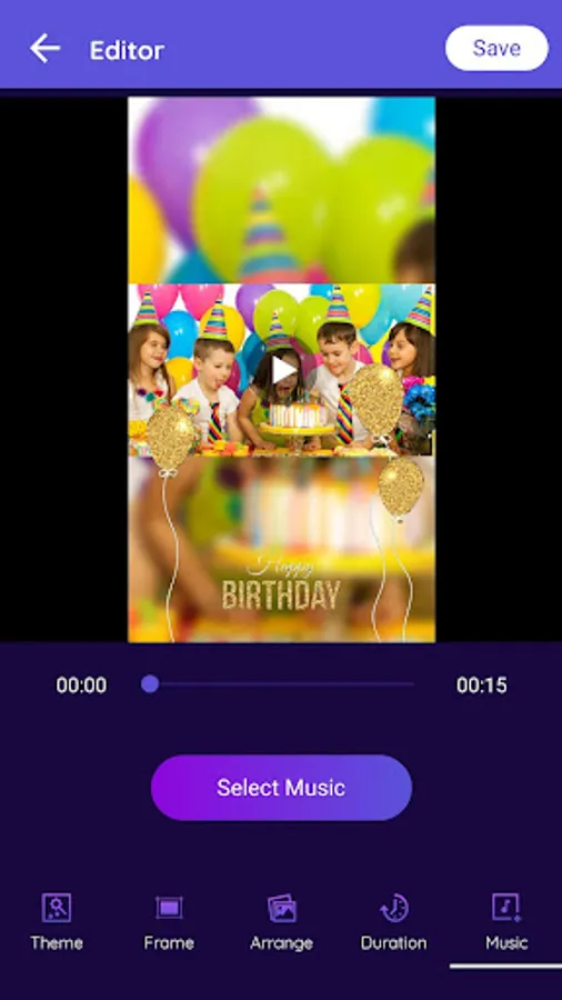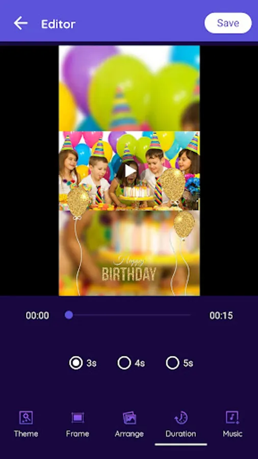 Birthday Video Maker allows users to create different time duration effects to video and also users can get a live preview of the video. so users have a complete idea.