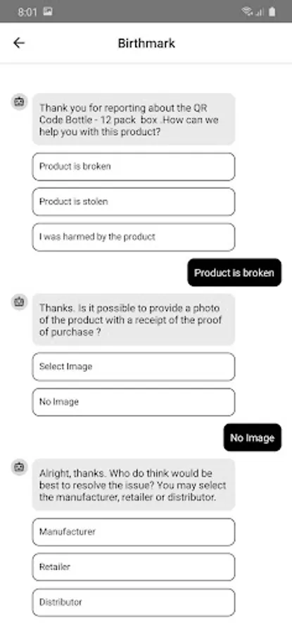 Birthmark is a QR code scanning app for product quality and safety reporting.