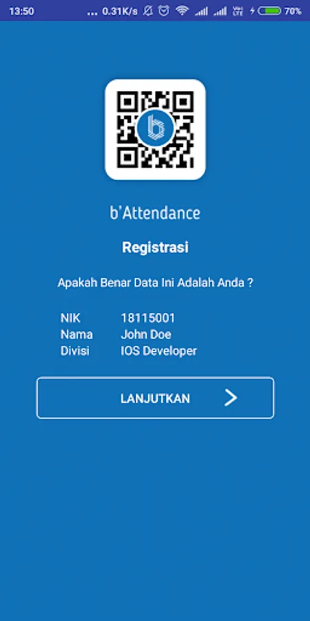 The application for attendance uses a scan QR Code with the 2FA (two factor authentication) method to avoid cheating. b'Attendance uses NIK as access to the application. Currently there are 3 main features in b'Attendance