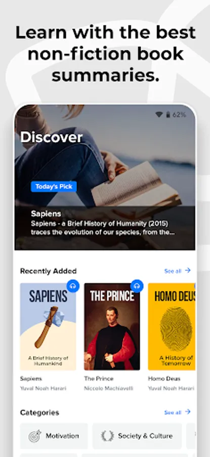 ● Discover new books with book recommendations prepared by our editors. It will help you develop a daily reading habit.