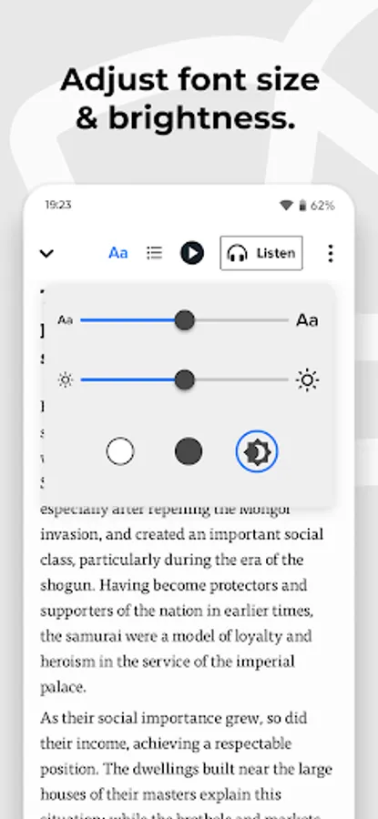 ● With advanced reading options, you can adjust font size and brightness, with day or night modes to make for a comfy read.