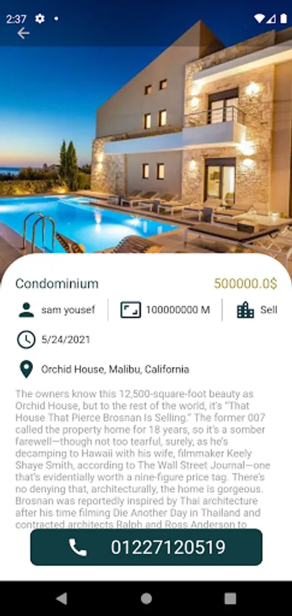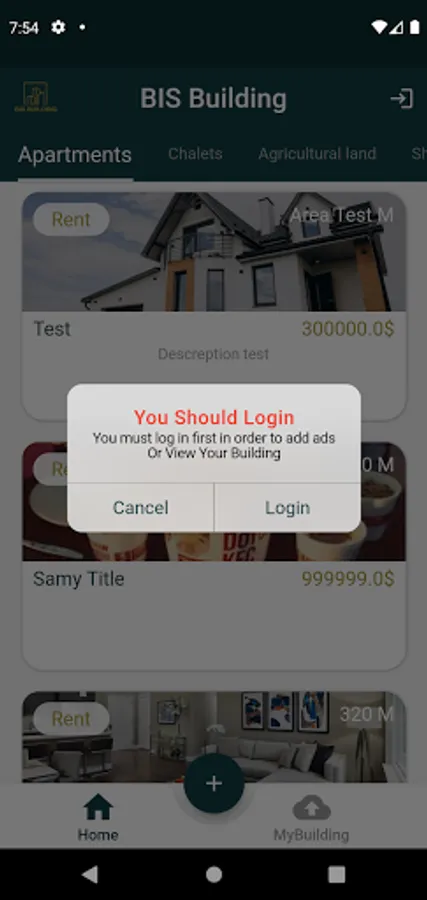 A simple application to display shops and apartments, and the user has to view the offers and call the owner