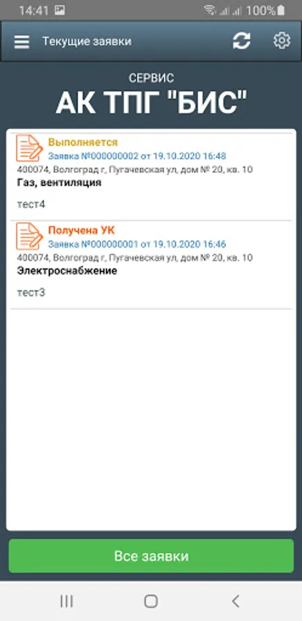 Service application created for MC AK TPG "BIS":