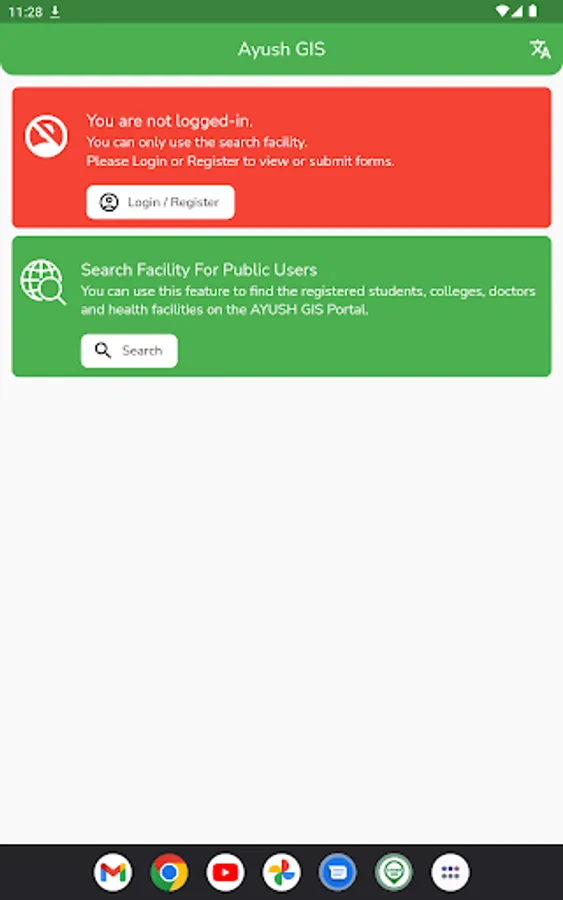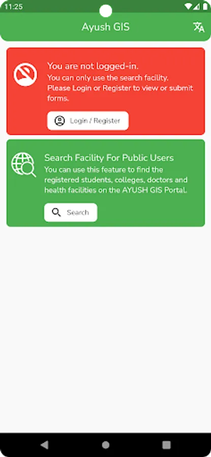 This version provides facility for Ayush Health Facilities, Ayush Practioners, Ayush Medical Colleges and Students to register them self with some basic details. After successful registration, registered facilities will be mapped on Ayush GIS and can be viewed by all. The App also provides the facility of navigating to the required facility as well as sharing the details of searched facility to anyone through various means such as social media platforms, emails etc.