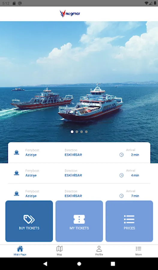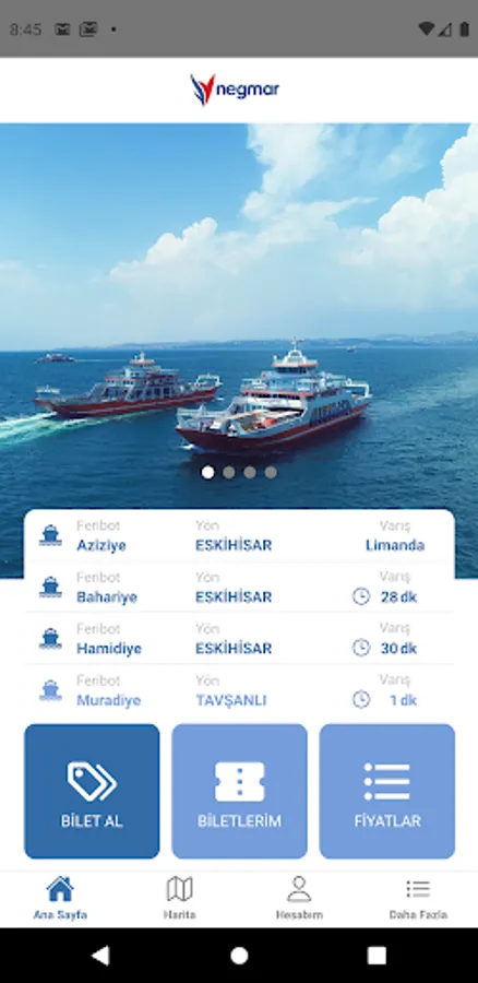With the Negmar application, you can buy tickets to travel with our ferries that travel between Eskihisar - Tavşanlı (Yalova), you can view the locations of our ferries online, monitor the arrival times of the ferries to the ports and plan your travels.