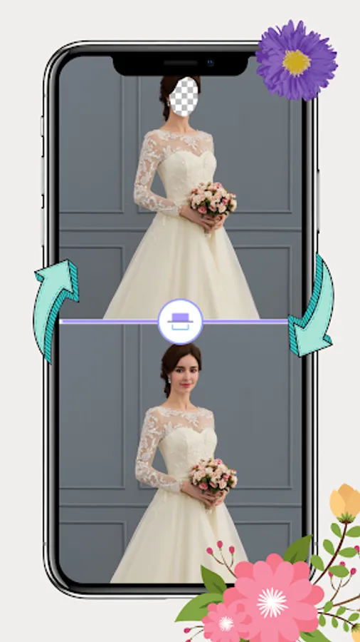 A beautiful and luxurious wedding dress is the dream of women who want to get married. Dresses with soft colors and very beautiful designs can be tried on virtually using this application. This wedding dress simulation application can be an inspiration in choosing a modern wedding dress. To get the photos to look more real, use a selfie photo of the face with lighting conditions that match the existing wedding dress photo.