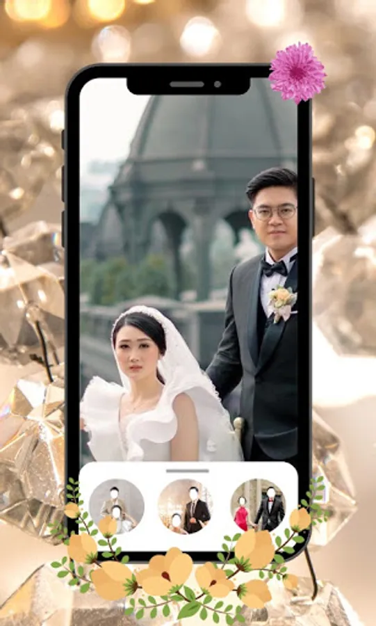 Wedding dress knick knacks sangan many such as brocade, crown, flowers, hijab, necklaces and so on, the application photo editor is a photo frame application that has a wedding theme with dresses that have a variety of knick knacks.