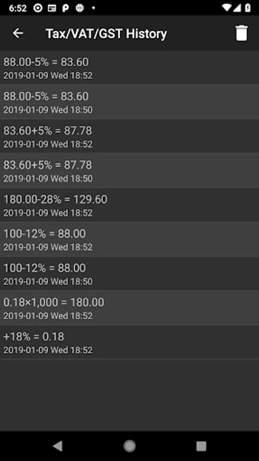 - Calculation is displayed in a list view