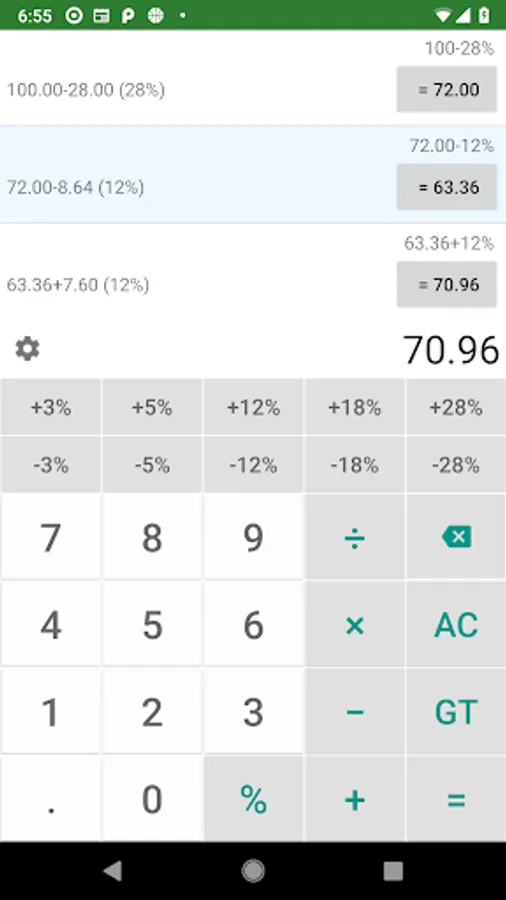 Calcuate Tax, VAT, GST or Sales Discount with this simple and easy to use app. User simply enters the number and click percentage button. No learning and instruction are needed.