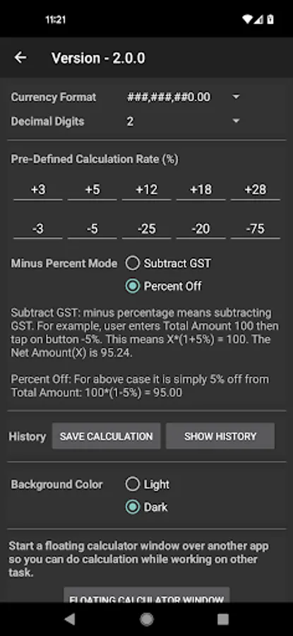 - Calculator supports light or dark background