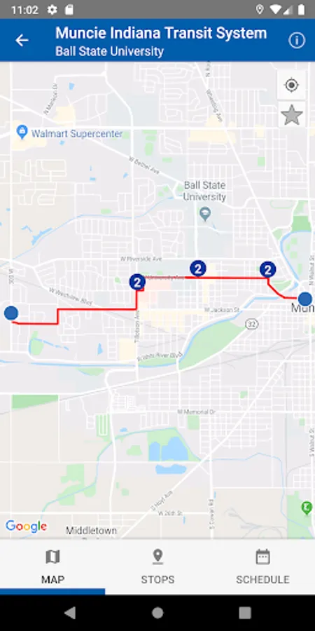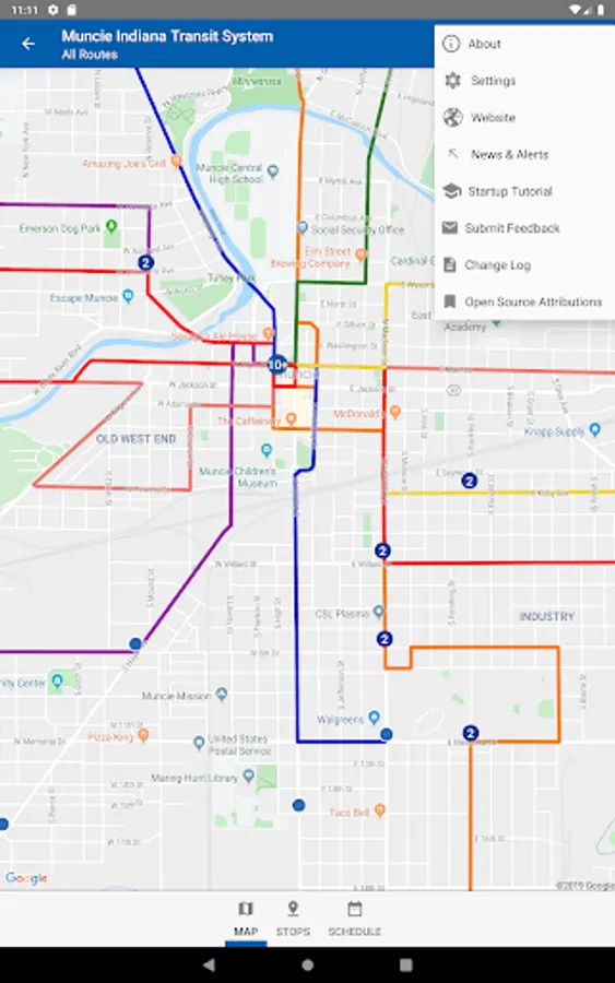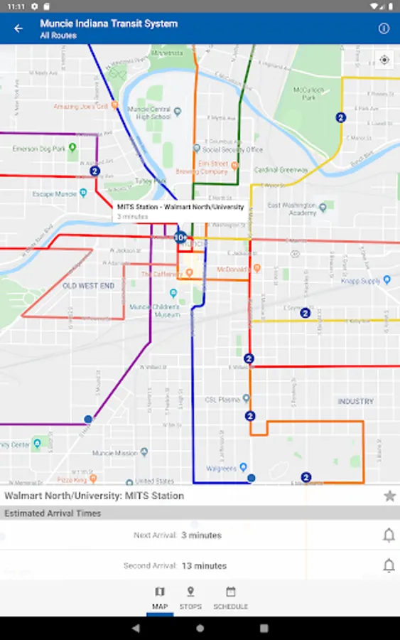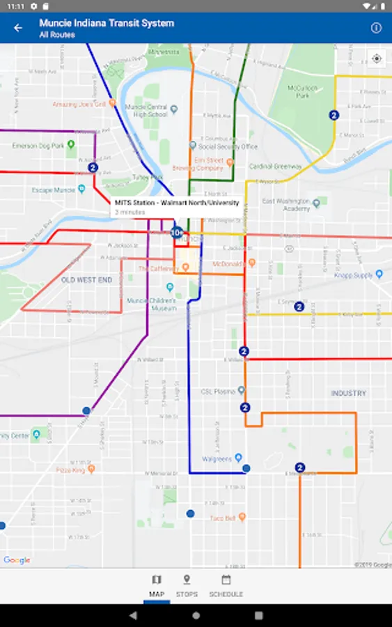 Real-time bus information for Muncie Indiana Transit System's fixed-route transit service in Muncie Indiana
