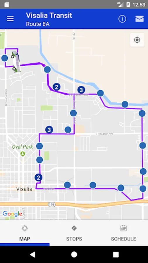 Real-time bus information for the Visalia Transit fixed-route transit service in Visalia, CA.