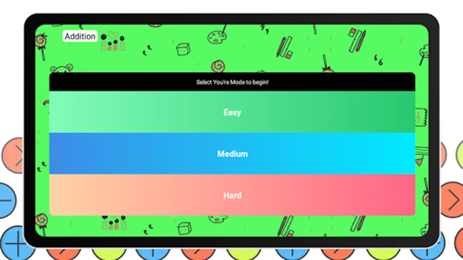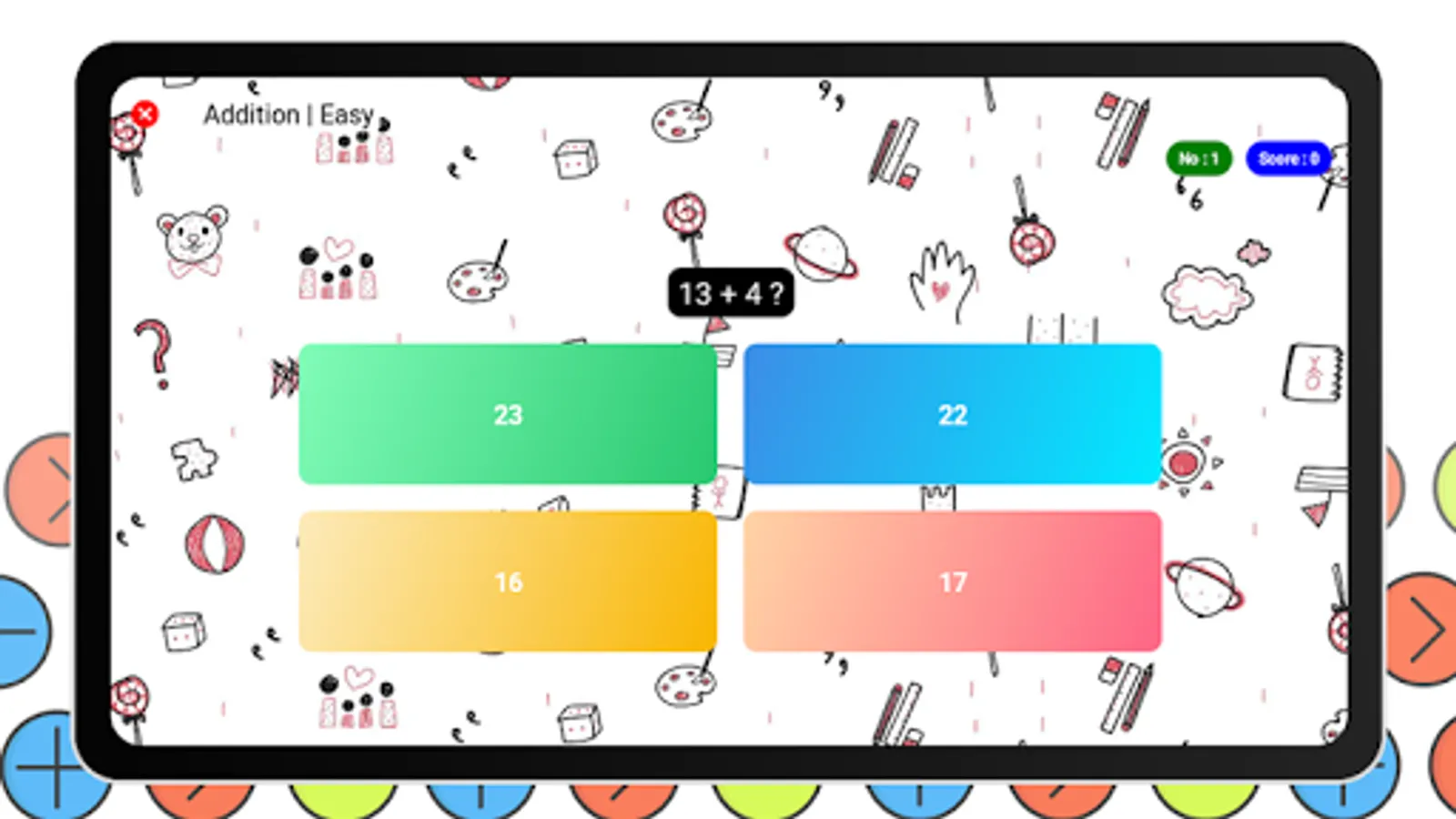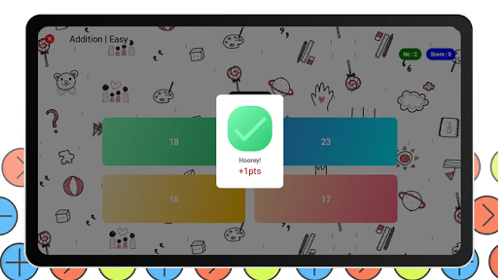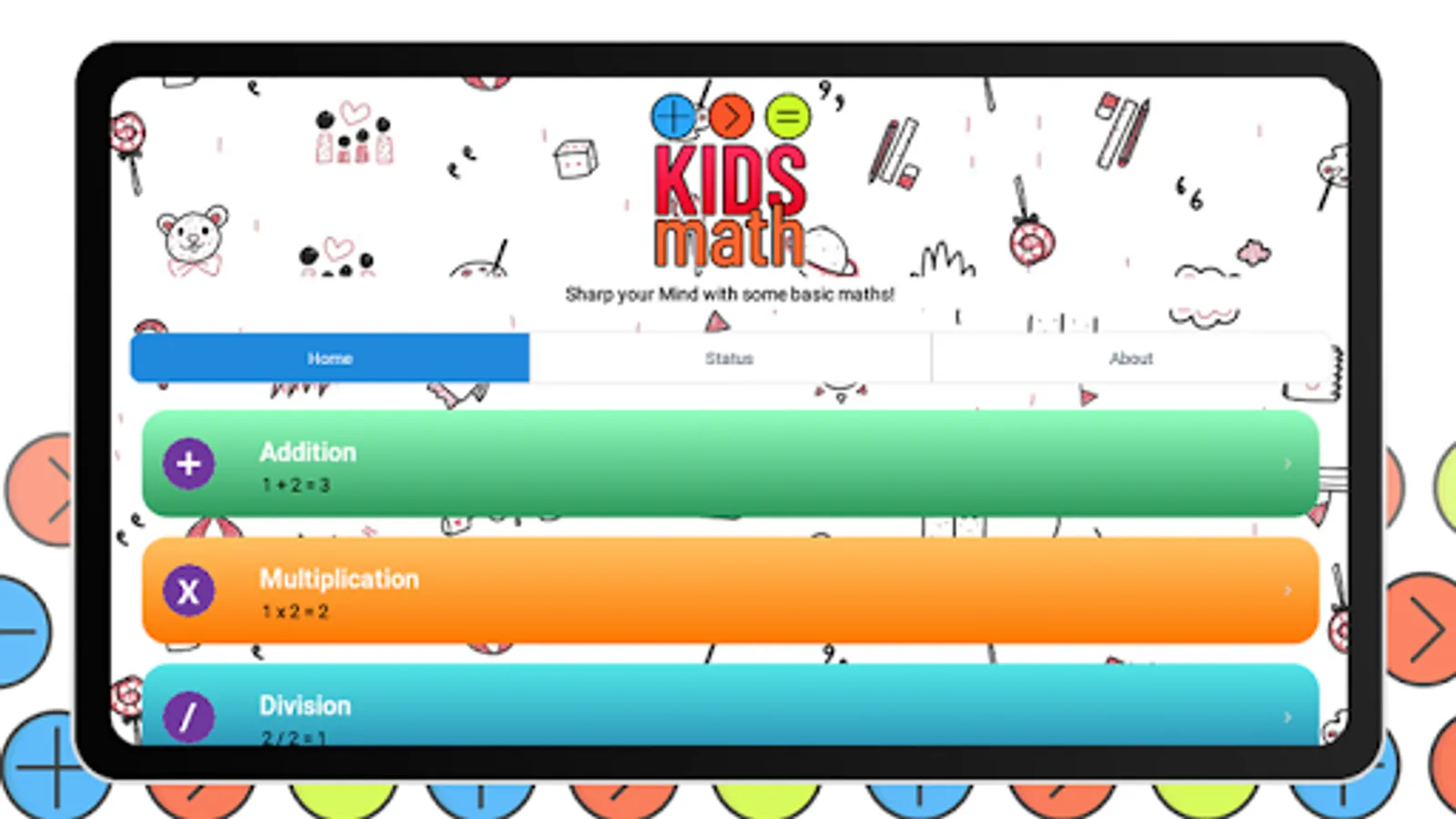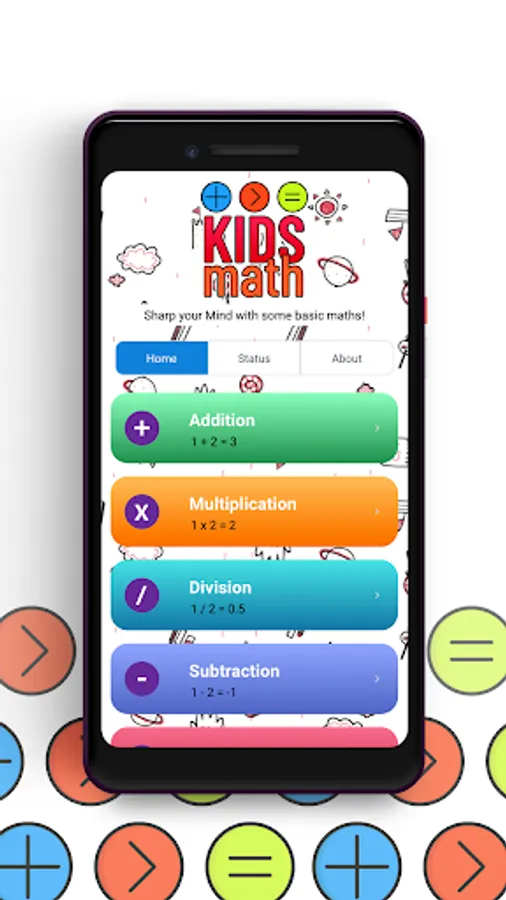 Kids Math is an exciting, educational, and fun to play. Your Kid will easily learn Addition, Multiplication, Division, Subtraction with easy to Hard questions!