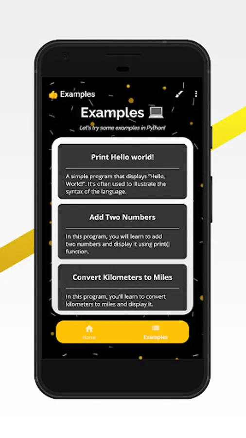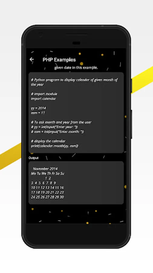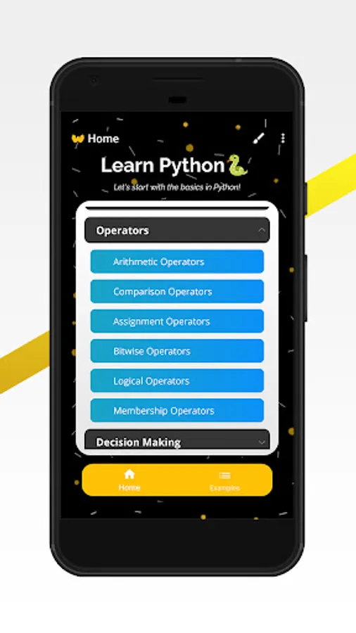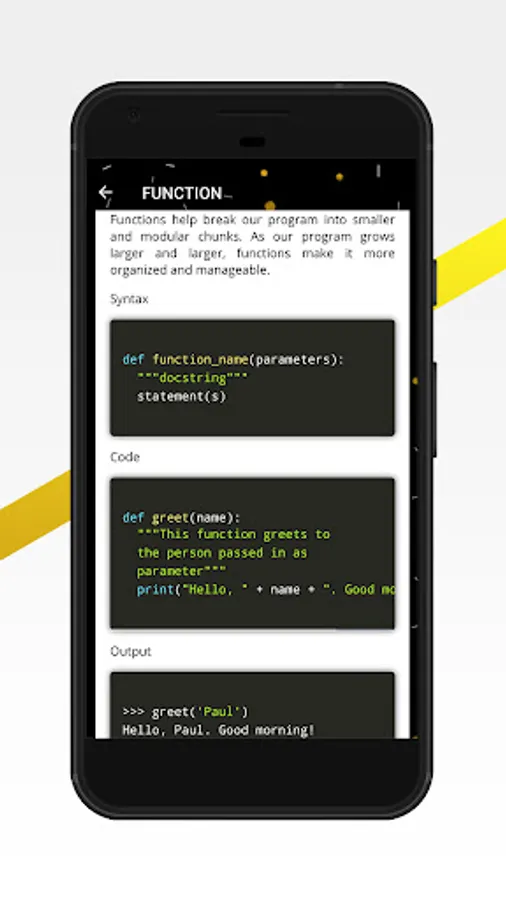 This app covers all the important parts of Python. It's created to improve the thinking of varied issues in regards to the basics of Python programming. It consists of relevant subjects and their syntax, source code.