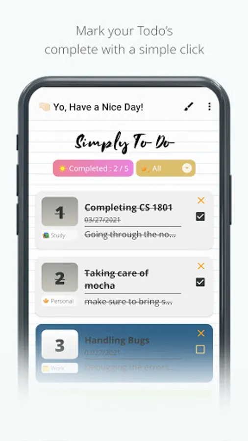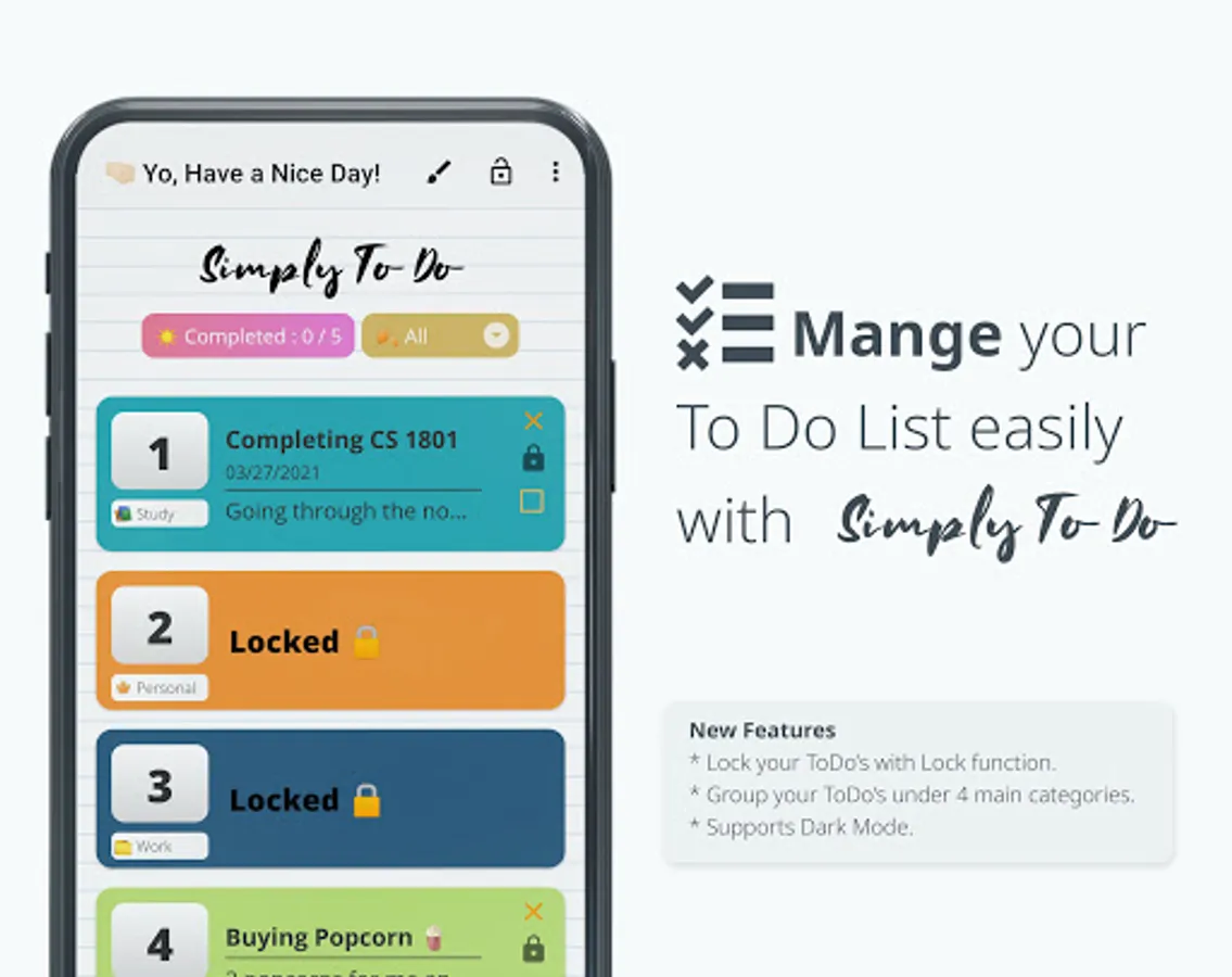 This app provides a very user-friendly and simple-to-navigate interface with many features. You can add and update you're to-do's easily without any difficulty via the simple add, update navigation. Furthermore, this app provides security features to lock your Todo's when you needed and the date function is used to facilitate to set any task to be completed in the furure.