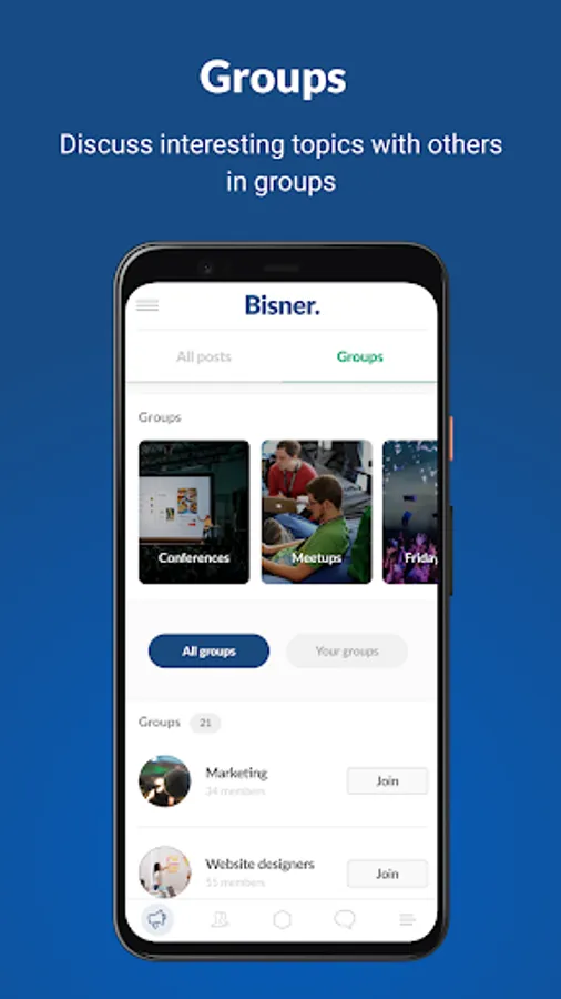 Bisner is the community app that enables you to easily connect, communicate and collaborate with other members. We empower members to actively engage with the community.