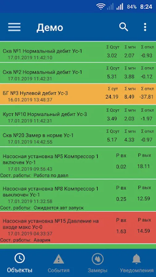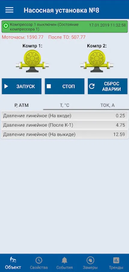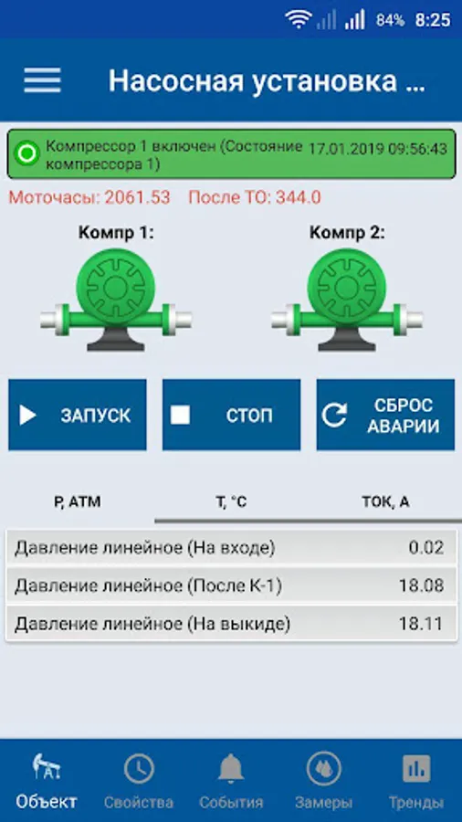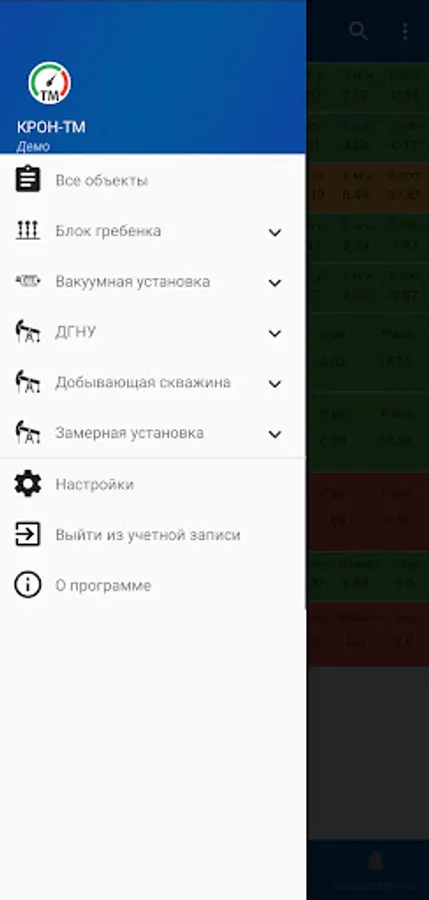The mobile application "KRON-TM" is an addition to the information system "KRON-TM" (SCADA) for monitoring and managing production facilities.
