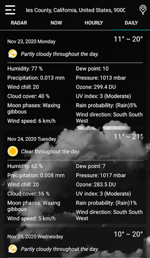+ Local forecast from NOAA: temperature in Celsius, Fahrenheit and Kelvin, humidity, wind speed, precipitation (rain and snow). Forecast for 10 days with 3 hours step in metric or imperial units: m/s (mps), mph, km/h, knt (knout), bft (beaufort), m, ft, mm, cm, in, hPa, inHg. NOAA is a National Oceanic and Atmospheric Administration / National Weather Service (nws).