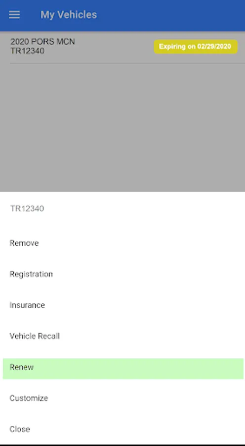 - Receive notifications of expiring vehicle registrations