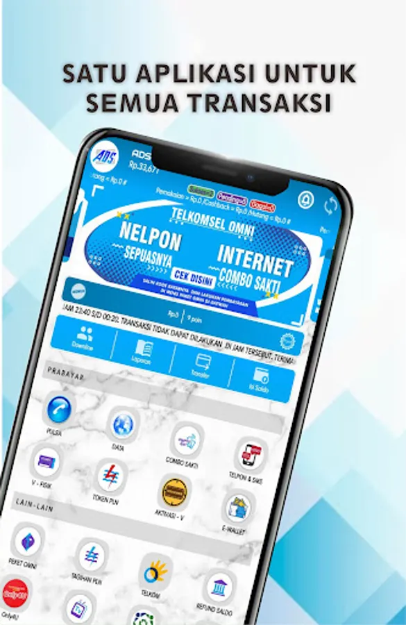 ADS Reload is an application that can make it easier for you to purchase credit online, purchase pln tokens, pay online bills / PPOB (Payment Point Online Bank), and purchase game vouchers, fast, easy and inexpensive transactions. Can be done anywhere and anytime.
