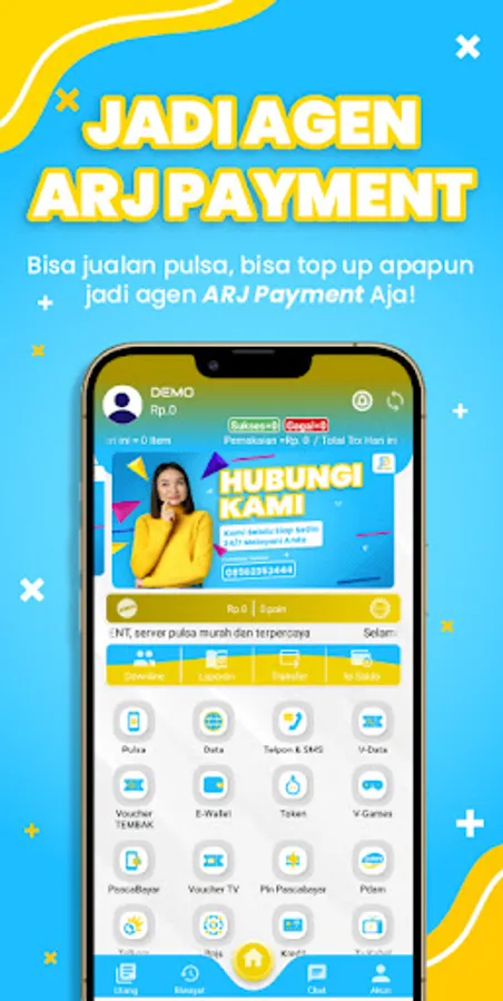 With this application, you can easily check the latest credit prices, see a recap of transaction history, calculate daily and monthly PROFIT, history of changes to your balance, downline activity, chat with customer service, and so on.