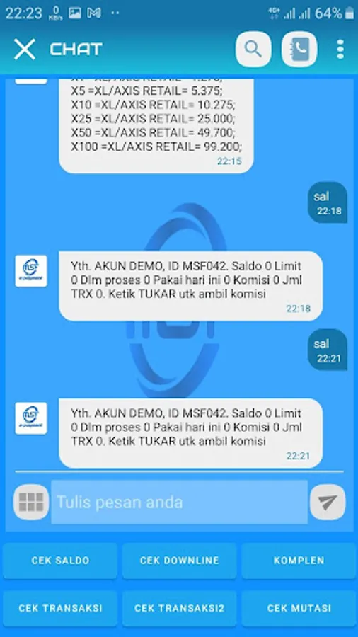 With this application, you can easily check the latest credit prices, see a recap of transaction history, change your balance history, downline activities, chat with customer service, and so on.