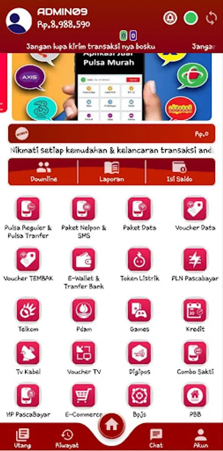 With this application, you can easily check the latest credit prices, see a recap of transaction history, change your balance history, downline activities, chat with customer service, and so on.
