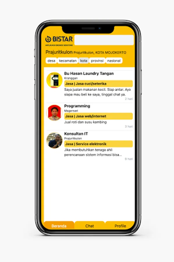 BISTAR is an application to find out what businesses in our neighbors are in our village.