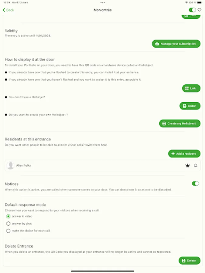 - Do you want several people, for example members of your family or your co-tenants, to also receive calls from visitors at your door ? You just need to declare them by inviting them