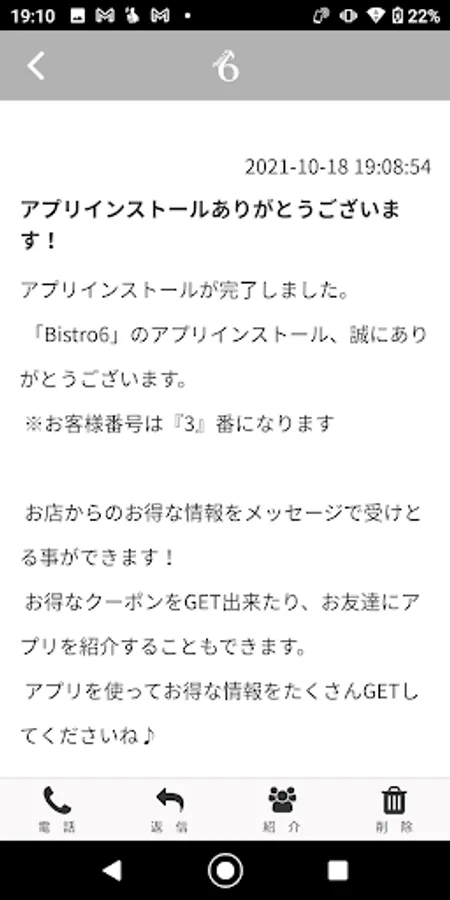 With this app, you can receive the latest information on Bistro 6 and use convenient functions.