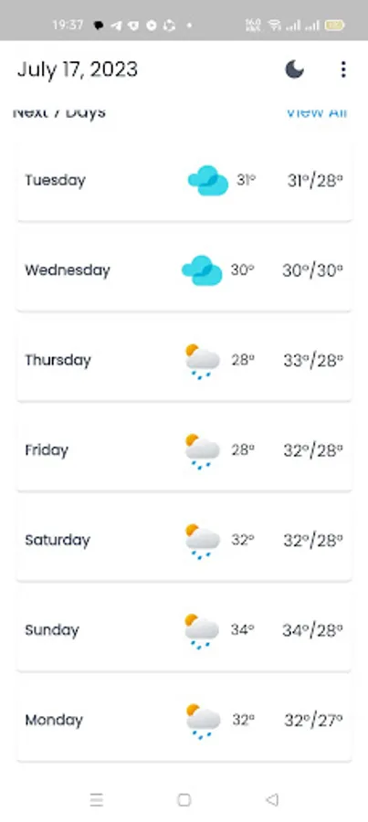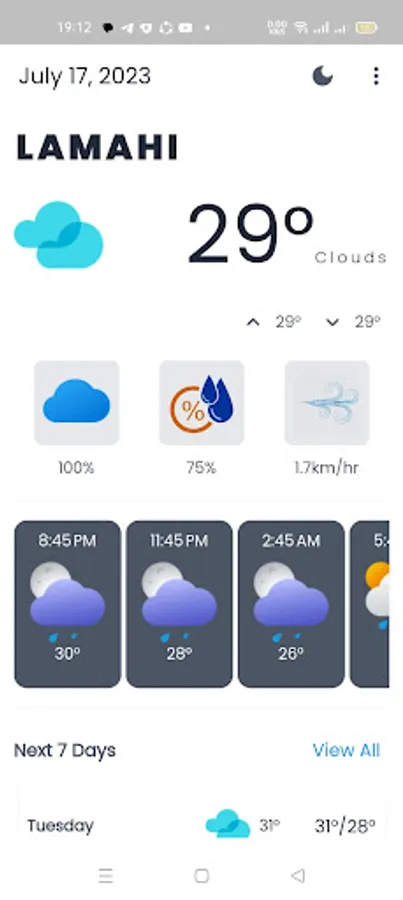 The app features daily weather, current weather. It shows the percentage of humidity, wind speed , hourly temperature as well as weather of next seven days. This app only show the weather of a town- Lamahi. The next app will show the temperature of other cities too.