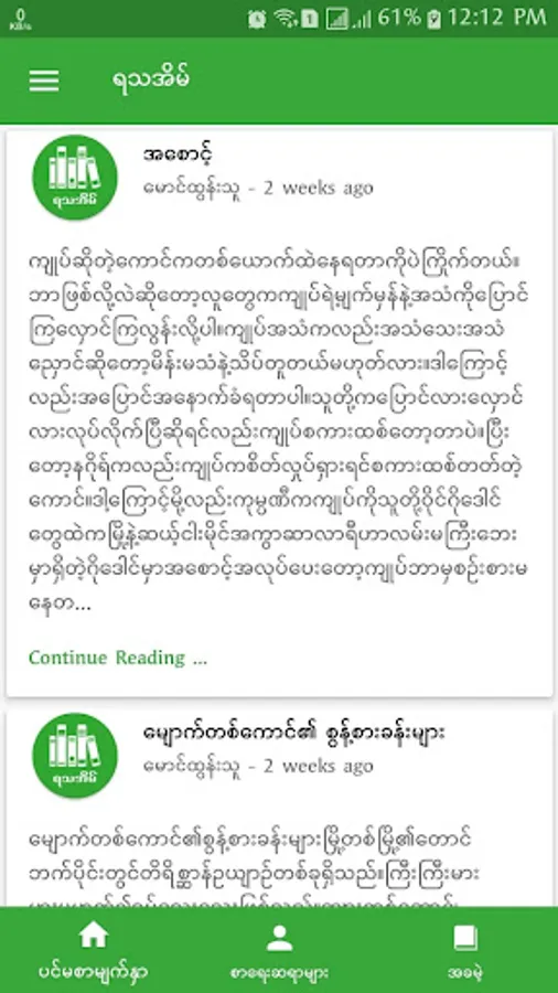 ရသအိမ္ ဝန္ေဆာင္မွဳသည္ မိမိ၏ မိုဘိုင္းလ္ဖုန္းတြင္ အခေပး Premium ဝတၳဳတိုမ်ားကို အလြယ္တကူ ဖတ္ရွဳႏိုင္ေသာ ဝန္ေဆာင္မွဳျဖစ္ပါသည္။
