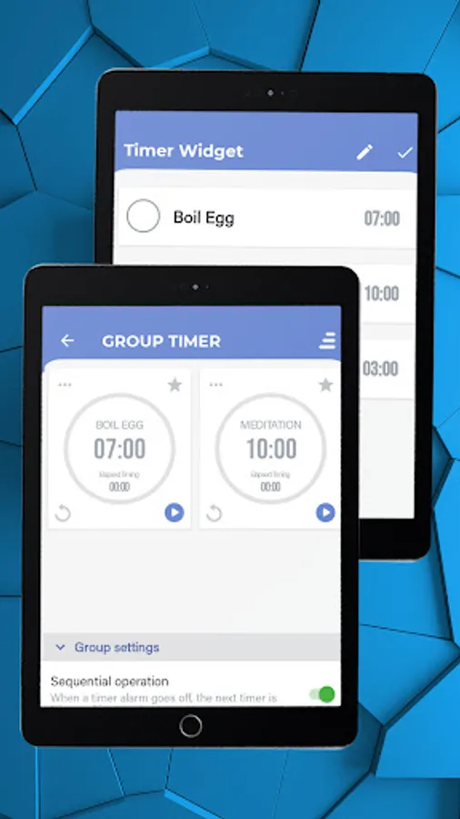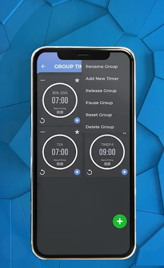 ~ Group the timers so you can run them sequentially, one after the other, and cycle them as many times as you like.