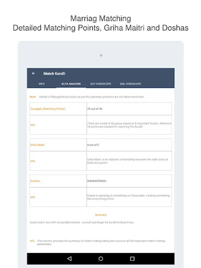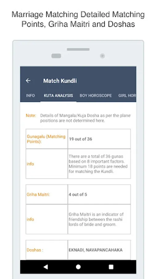 ⁃ Horoscope Matching: Vedic Kundli Matching (Love Compatibility & Marriage Compatibility) based on 36 Points System