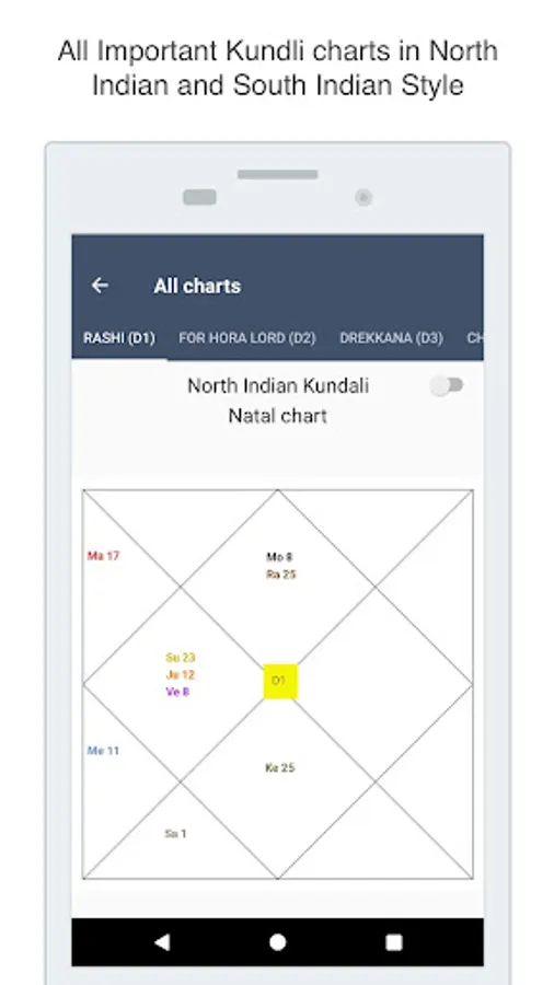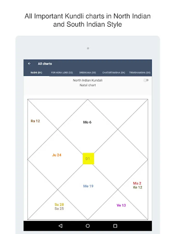 ⁃ Shodashvarga - All 19 divisional charts (South Indian and North Indian)