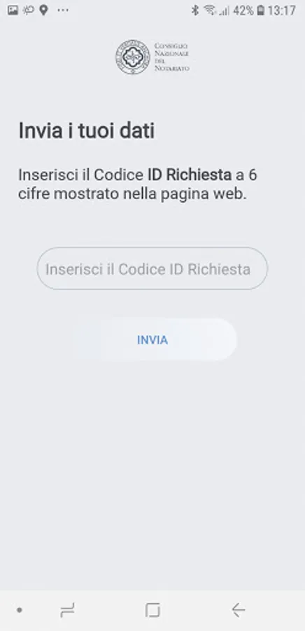 • Verify the accuracy of the data acquired through the scan and click on the "Send your data" button; enter the "Request ID" code provided by the notary.