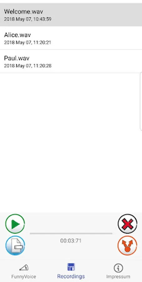 With this app you and your friends will have a lot of fun. Record your own or a friend’s voice and listen to the amazing audio effects. Your friend will be surprised, if suddenly the voice sounds like a robot or a helium voice. Moreover, you can save your modified recordings and send them via E-Mail – either as WAV file or as M4R file (to use as your individual ringtone). You can even post a message to Facebook or Twitter from the FunnyVoice app telling your friends about FunnyVoice.